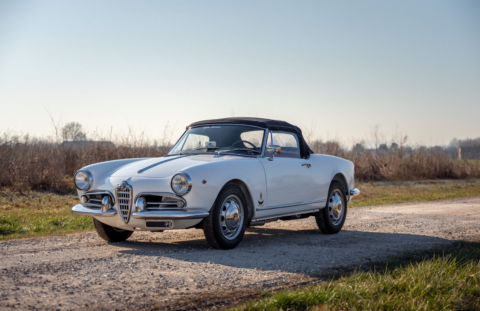 The first series identified with the acronym 750 was produced from 1956 to 1959 and was sold in the normal 750D version or in the “fast” 750F version (less than 2800 examples were produced in total) aesthetically identical but with superior performance thanks to the two carburettors Weber 40 and at a higher compression ratio. This car was sold new in 1959 in the white color combination with red interior that it maintains today: even the engine and gearbox are the original ones to testify to a regular life lived in these 64 years, there is a confirmation from the Alfa historical archive Romeo of chassis and engine numbers with “fast” specifications.